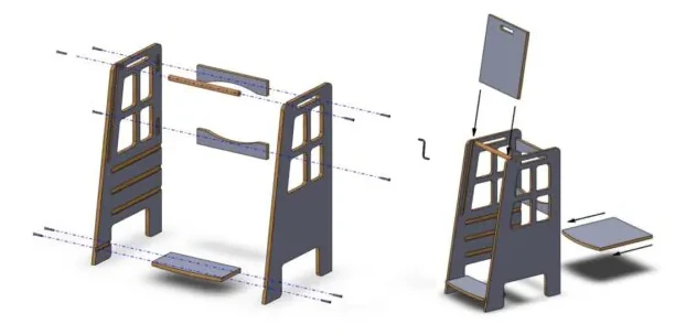 Zaczynając od bocznych ścianek, przykręć je do podstawy pomocnika kuchennego. Użyj wkrętów lub śrub, aby zapewnić stabilność konstrukcji. Upewnij się, że elementy są prosto ustawione i równo przykręcone. Następnie zamocuj stopnie na odpowiedniej wysokości, by dziecko mogło łatwo wejść na platformę. Zrób to w taki sposób, by stopnie były solidnie przytwierdzone i nie przesuwały się.